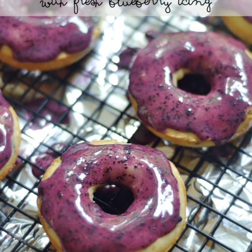 These baked yogurt donuts with fresh blueberry icing are fast and easy for busy parents! Kids love them because of their sweet and bright blueberry flavor AND fantastic color. You’ll love them because you can make them up in under 20 minutes.
