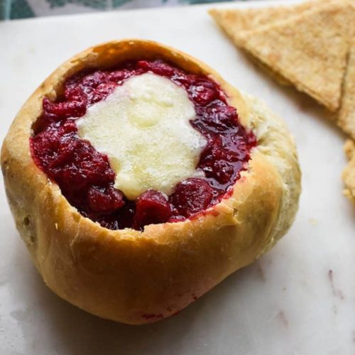 Baked Brie in Bread Bowls with Cranberry Sauce