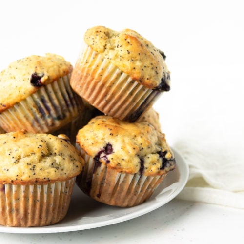 My son Levi’s favorite muffin, bread, or cake is lemon poppyseed and I’ve been making them for years and years. Usually I make the quick lemon poppyseed scones, or my to-die-for lemon blueberry bundt cake and add poppy seeds to it.