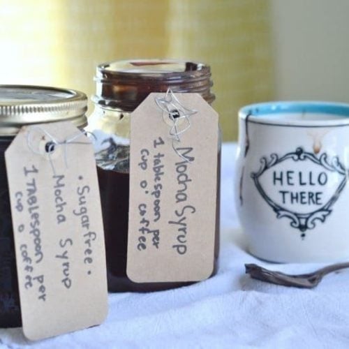 This syrup is a good way to curb our seemingly daily desire to head to that coffee shop for a treat. I can simply add this to a strong cup of coffee and top it with homemade whipped cream for a delicious coffee-shop quality cafe mocha. Sure, it’s not the same and we still visit our favorite spot weekly, but this syrup has dramatically cut down the trips. It has become incredibly hard to justify making the trip when I can whip up a decadent coffee drink at home.