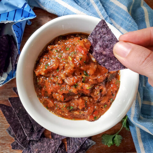 This salsa recipe uses only a few ingredients and whips up lickity split. Charring the tomatoes only takes an extra few minutes but makes all the difference in the world in flavor.