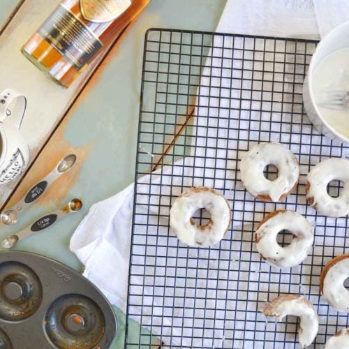 These cake donuts are the perfect way to start your Saturday morning! They whip up in under 30 minutes (INCLUDING that fabulous whiskey icing) and are terrific with coffee!