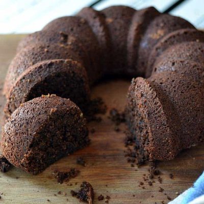 I make this in a [easyazon_link identifier=”B0000D8CAM” locale=”US”]bundt pan[/easyazon_link] because when I make them as cupcakes it seems everyone thinks they should be sweet. When I make it as a loaf pan I get comments on how sweet it is. A bundt pan is a good happy middle, but this recipe works great as muffins or in a loaf pan, as well!