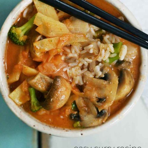 I want to lick off the screen! I could eat this Thai curry recipe for every single meal for every single day. Gosh, I love the sweet and spicy of this stuff. The coconut milk is rich and still gentle for the lactose-intolerant. Mushrooms bring heartiness, broccoli adds perfect green texture and bamboo shoots are a great crunch.