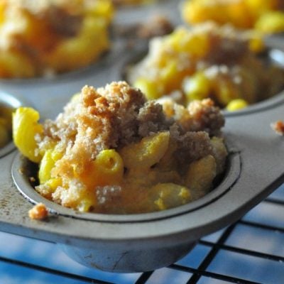 These Mac and Cheese Cupcakes are simple to prepare, include squash and while the State Fair version included a swirl of Cheese Spray, I gave mine a fall-inspired, pumpkin-pie sugar spice panko crust. While waiting for the Mac and Cheese cupcakes to come out of the oven, my kids pressed their noses to the oven window. The bright noodles, covered in the sweet panko crust were twisted up with creamy squash and cheese. Our family sat down together, their arms tanned from the summer sun and they popped the Mac and Cheese cupcakes into their mouths. The kids each ate three! My jaw dropped. I knew my kids would love it, but my husband did too. This recipe makes 24 cupcakes, perfect for a big family meal and then great for leftovers. This would be an easy  lunch idea for the kids and you could also wrap the cooked cupcakes in parchment paper, put in a freezer bag and microwave for a fast dinner.