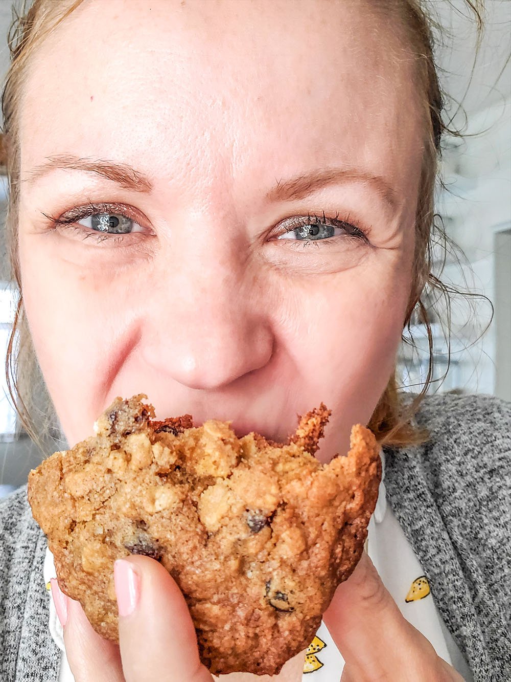 Can I tell you secret? Most of the time, we sub out the raisins for chocolate chips. Or, add both to the cookies. SOOOOO good. Give that a try!