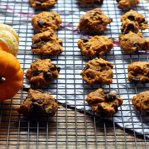 My 14 year old son particularly loves the fall cookies. He is all about the ginger, cinnamon, and pumpkin flavors and loves when the cooler weather rolls around and he comes home to the smell of fall and a plate of these cookies on the table. Â These pumpkin chocolate chip cookies are easy to make, full of pumpkin-y fall flavor, and packed with yummy chocolate chips. I can whip up a batch of these in half an hour. While I drink my coffee :).