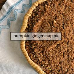 Cracking eggs. Another of those tasks he loves… I don’t understand? Eggs, pumpkins and pie crusts. Christmas presents? Here’s the good part. Stick some gingersnaps and pecans in the blender. Pulverize it.