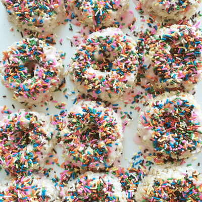 A fun, adorable twist on traditional Rice Krispie treats with the classic or my 3 ingredient version and a fun, delicious, cherry icing. Kids love creating these “donuts” and covering them in sprinkles. Great for snacks, parties, and just because!