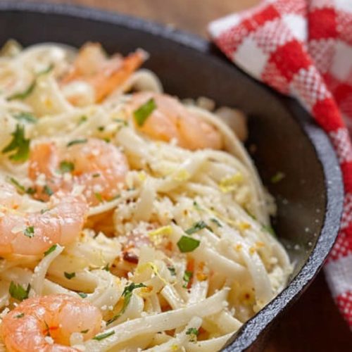 Suffice it to say that my husband doesn’t cook very often. That’s kind of “my” thing. And, I am perfectly fine with that. Because I LIKE cooking. A lot. But, sometimes he gets down in the kitchen and does his thing. One of his favorite things ( and ours!) is this fast and easy garlic shrimp scampi recipe.