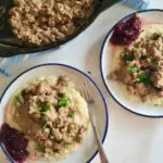 - Roasted veggies: Adds a little freshness and balances out the creamy gravy. Try mashed cauliflower, yum!