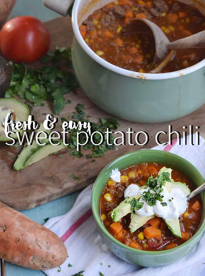 It will remind you of your grandma’s chili but with a fresh, delicious, new update. Kid’s love the mild sweetness of sweet potatoes (have you tried sweet potato fries with your kiddos? They’ll love them!) and you’ll love the nutrients that come in the sweet potatoes.