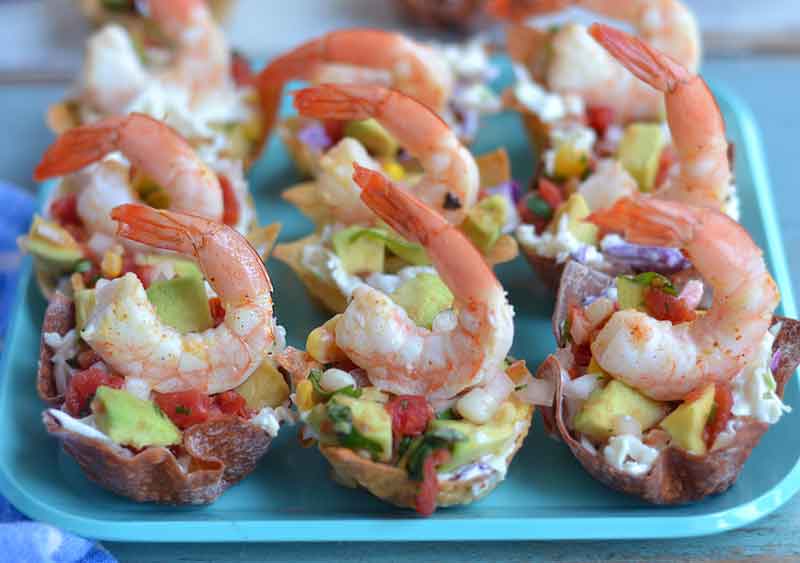 These are best when eaten closely after being put together. Make the shrimp, coleslaw, salsa, and wrapper in advance and put the cups together just before they are needed.