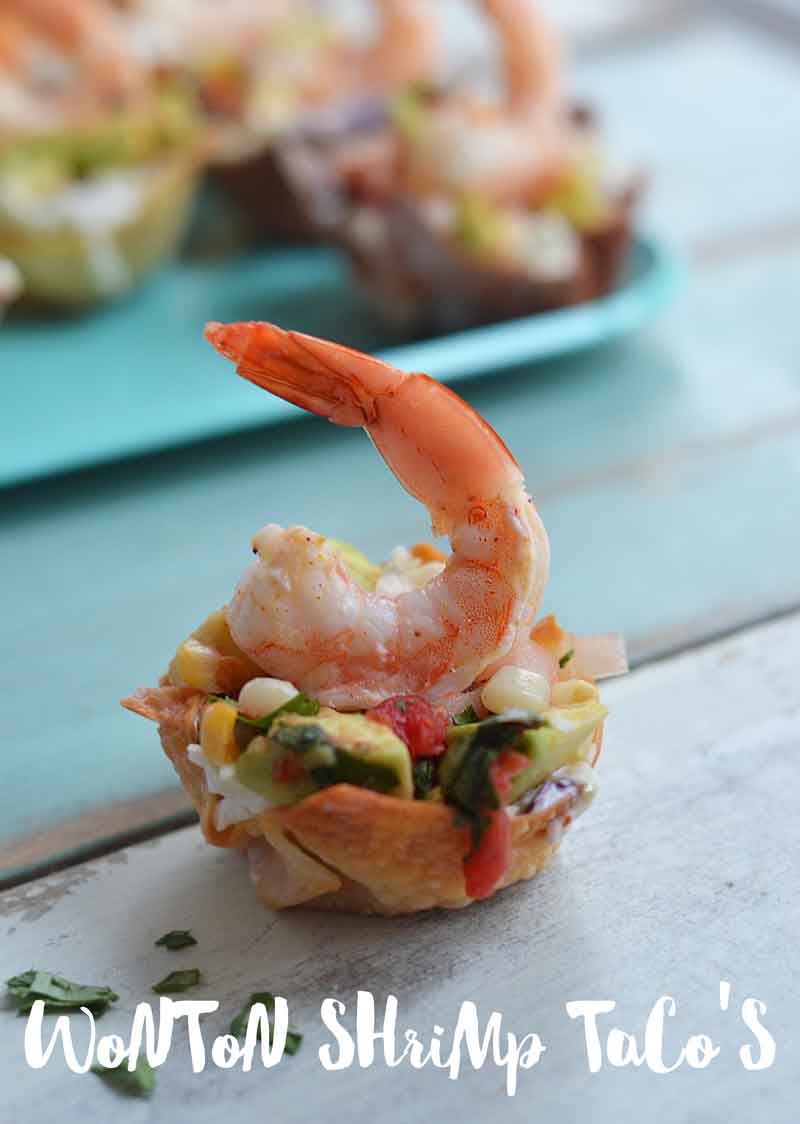 For the Game Day Party you are throwing for the guys…go ahead and sub out the fresh salsa with prepared salsa. Those guys won’t care. Serve them a wonton shrimp taco at the beer tasting table and you’ll be a hero!